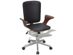 Fauteuil Chaise Chaise De Bureau Rotative En Bois Cintré Avec Revêtement En Faux Cuir 0502045