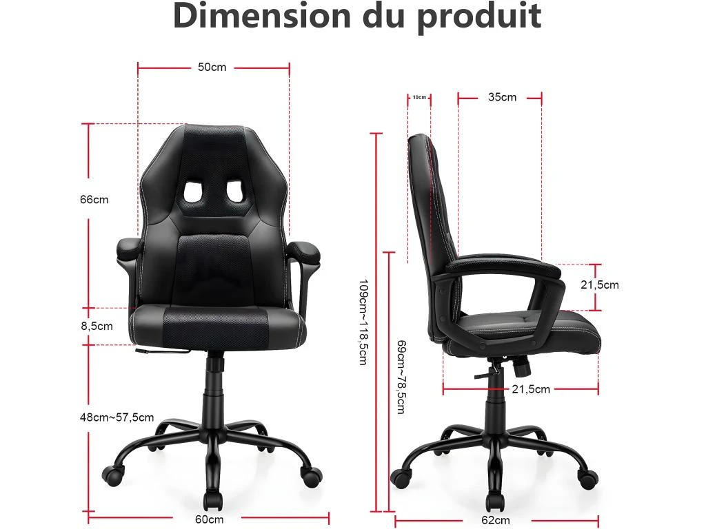 - 【Structure stable et style racing :】Reposant sur une base en fer robuste, le fauteuil peut supporter jusqu’à 120 kg pour convenir aux adultes et aux adolescents. Avec son design élégant et sportif, le fauteuil Gaming offre une expérience de jeu plus immersive, ce qui en fait un complément parfait de votre chambre, salle de jeu, salle d’études, etc.