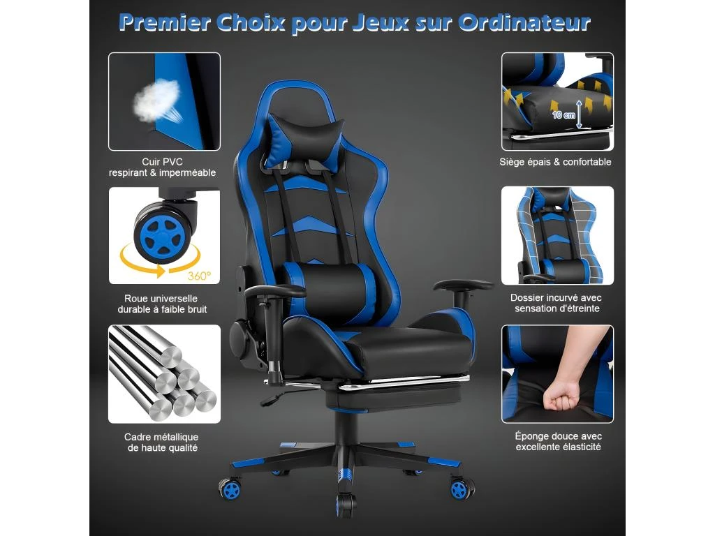 Chaise Gaming Cuir PVC, Siège Gamer Ergonomique Pivotant