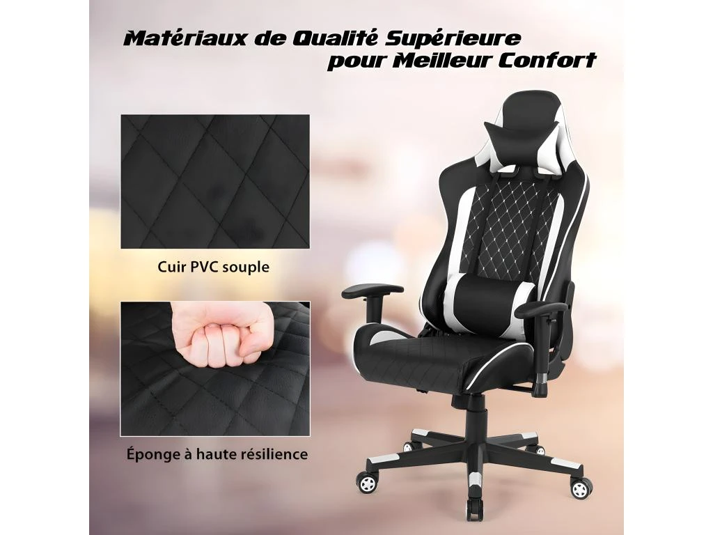 - 【Roulettes pivotantes et lisses à 360 °: 】La chaise de jeu est équipée d’une base à 5 griffes, de manière à disperser uniformément la pression pour une plus grande stabilité. En outre, les roulettes lisses vous permettent de vous déplacer pour discuter avec d’autres joueurs ou prendre quelque chose. De plus, lorsque vous vous sentez fatigué, le siège pivotant à 360 ° vous aidera à vous détendre davantage.