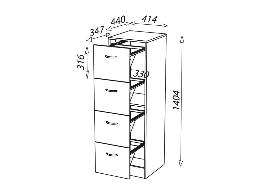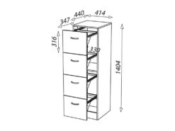 Les 4 tiroirs sont montés sur glissières métalliques de haute qualité afin d’assurer un fonctionnement fluide et fiable.