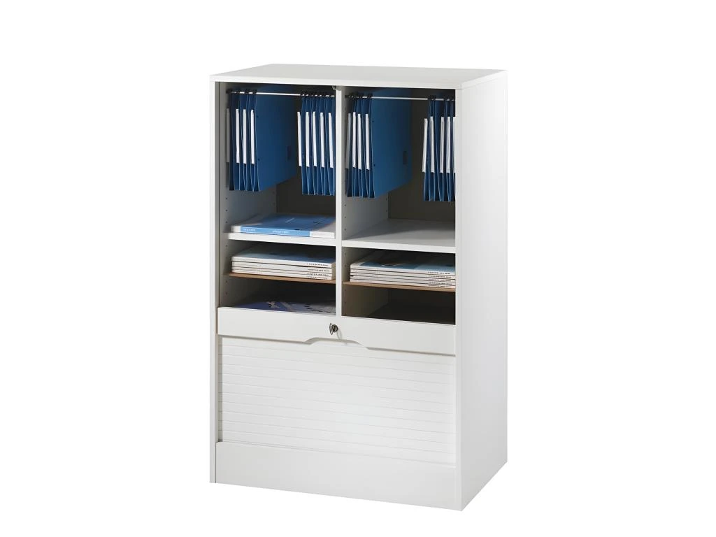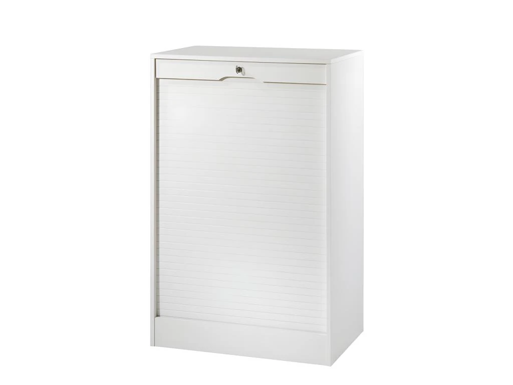 – Meuble gain de place, grâce à son rideau qui coulisse de haut en bas.