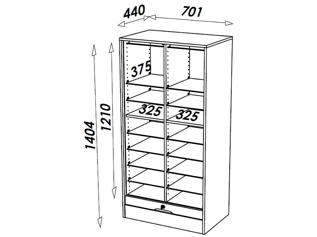 – 2 kits (réglables en hauteur) pour recevoir des dossiers suspendus à lecture verticale. (Dossiers non fournis)
