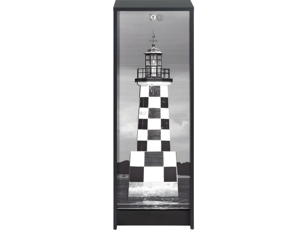 Classeur à Rideau Noir, Rideau Imprimé, Hauteur 104 cm