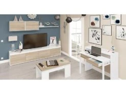 Armoire Informatique Blanche Ă Roulettes 2 Tiroirs – Coloris: Bambous 912