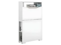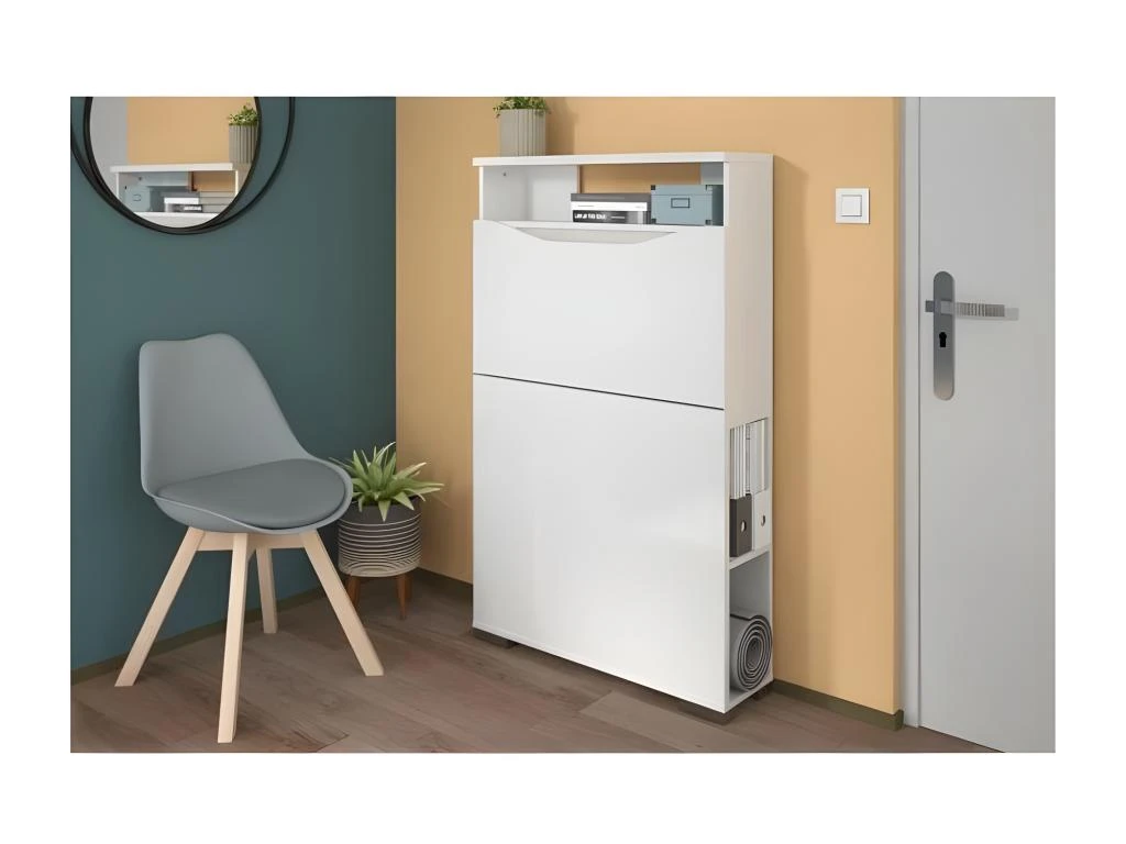Secrétaire Avec 2 Porte Et 3 Tiroirs – MDF Et Métal – Blanc Laqué – ERWIN