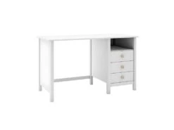 Bureau 3 Tiroirs en Pin Massif Blanc de la gamme Dava.
