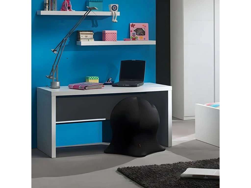 Bureau Droit avec Voile de Fond en Pin Laqué Blanc de la gamme Debbie.
