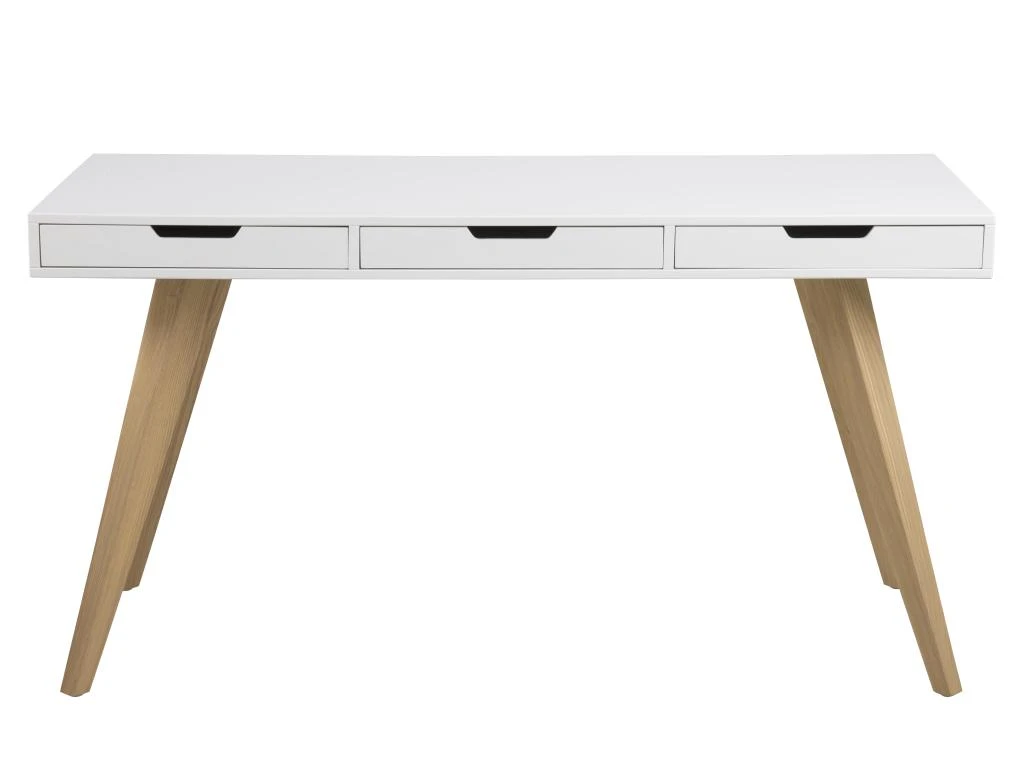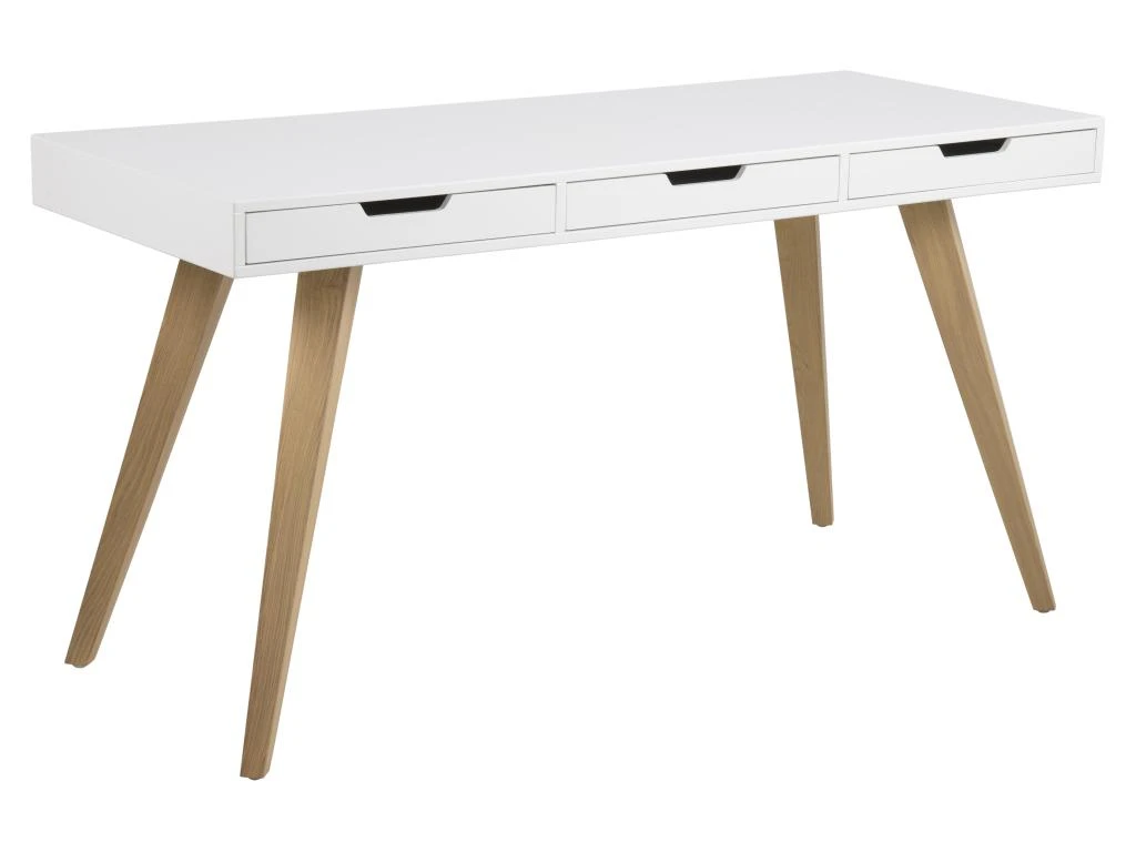 Bureau 1 Porte 1 Tiroir – Decor Bois Blanc Et Gris – L 140 X P 60 X H 75 – COLOGNE