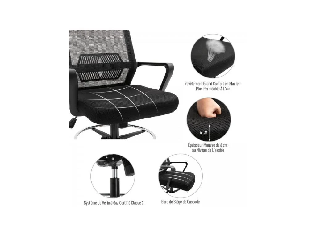 Design et ergonomique, le fauteuil de bureau assise haute Igor reprend toutes les qualités d’un siège pivotant classique en version haute : dossier inclinable, rembourrage dense, assise et repose-pieds circulaire réglables en hauteur. Ce fauteuil haut est apprécié lorsqu’on travail en milieu artistique, médical, derrière un comptoir, dans un open space ou chez soi.