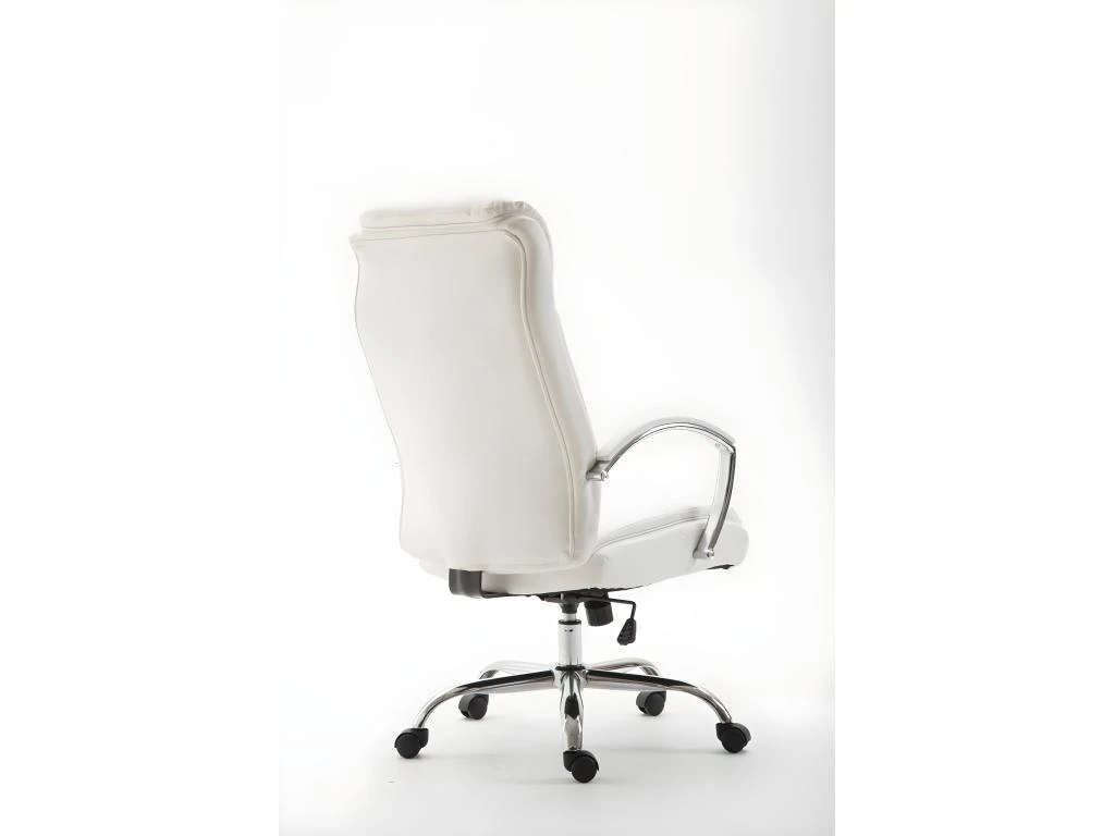 Structure en métal chromé et sur 5 roulettes légères en plastique.
