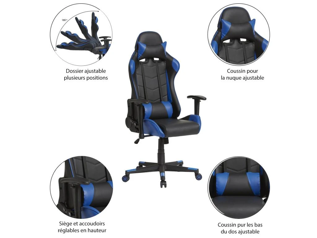 Ce fauteuil adopte le design populaire des sièges de voiture sportive, qui présente un style sportif et agressif qui assure une assise confortable pendant plusieurs heures.