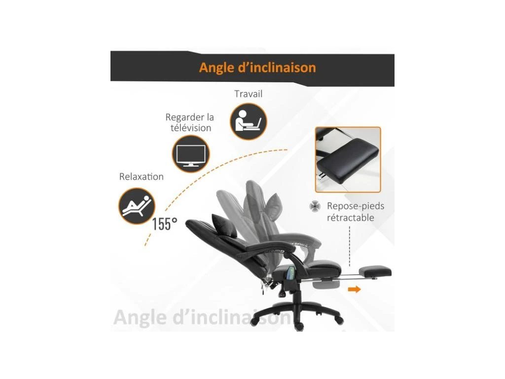 - Matériaux principaux : revêtement synthétique, garnissage mousse, nylon, PVC