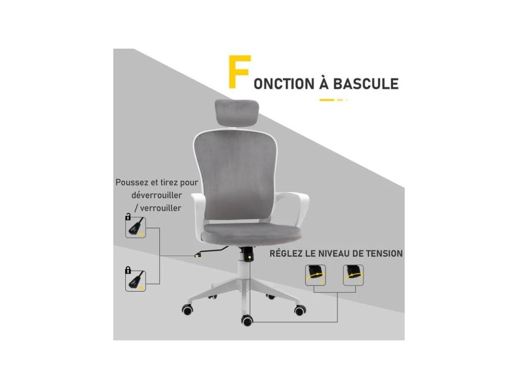 Fauteuil De Bureau SMART Velours Gris