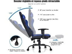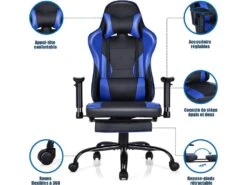 - 【Fauteuil rembourré et confortable toute la journée :】Garni d’une éponge haute densité et recouvert d’un PVC lisse, ce fauteuil pour gamer aux contours segmentés vous offre une expérience d’utilisation douce et agréable. Le repose-pieds permet de détendre vos jambes fatiguées et peut être rétracté pour gagner de la place.