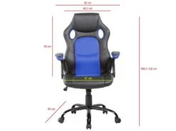 • Dimensions de la chaise dans la position siege abaissee: H 109,5 cm x L 66 cm x P 63 cm • Dimensions de la chaise dans la position siege relevee: H 120 cm x L 66 cm x L 63 cm • Hauteur minimum/maximum du siège: 40,5-51 cm • Hauteur du dossier: 69 cm • Épaisseur du rembourrage du dos: 4,5 cm • Hauteur des accoudoirs de l’assise relevée / abaissée: H 65/76 cm • Dimensions de l’assise: L 47 x P 49 cm • Epaisseur du rembourrage de l’assise: 6 cm • Charge max supporte: 120 Kg • Couleur: Noir, Bleu • Montage: La chaise de bureau est livrée démontée. Nous Vous invitons aussi à suivre les instructions de montage qui Vous sont livrées avec le meuble. • Matériau: Simili-Cuir, Pvc, Nylon, Métal • Cod. RE6209