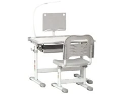 – Ensemble bureau enfant et chaise bicolore gris blanc, idéal pour ajouter une touche supplémentaire de modernité à sa chambre