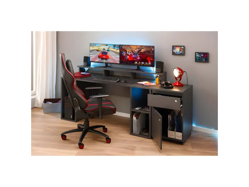 Pack Bureau Gamer Multi-rangement et Caisson Verouillable Anthracite de la gamme Mario.