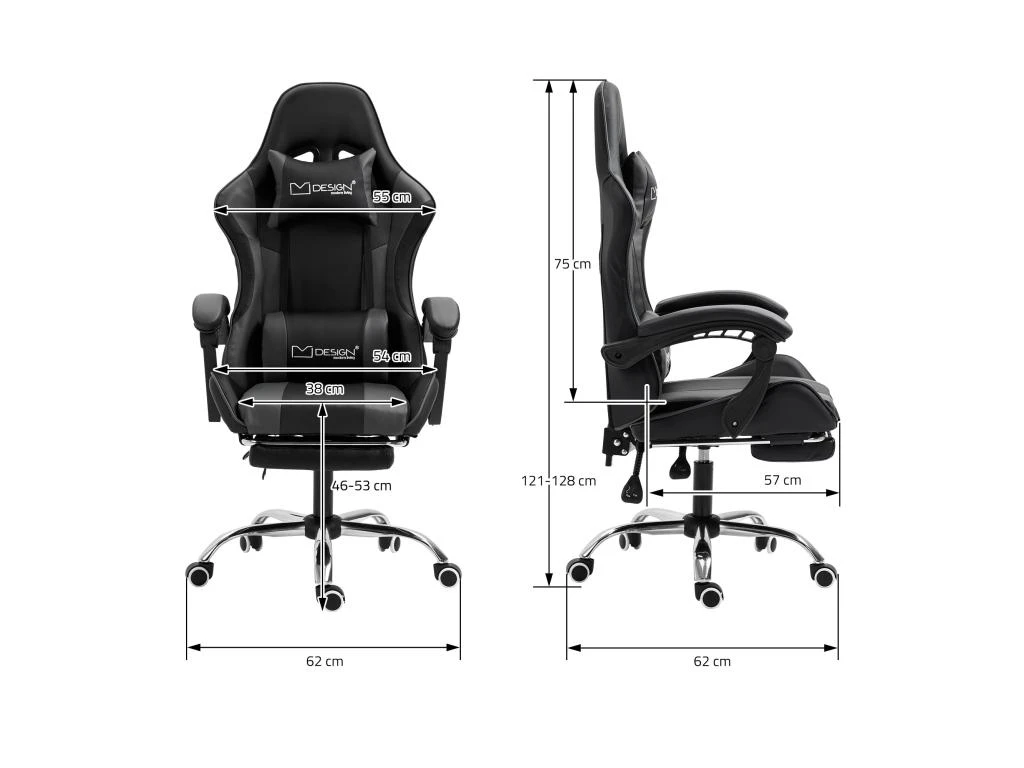 Robuste et résistant Le fauteuil peut paraître élégant, mais ne sous-estime pas sa force ! Avec une capacité de charge impressionnante allant jusqu’à 120 kilos et un cadre stable, elle est conçue pour te soutenir en toute sécurité pendant les sessions de jeu les plus passionnantes.