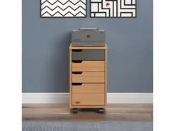 Mestre Commode Bureau, Tiroir Cassette Sur Roulettes. 3, 1 Tiroir Blanc,miel.