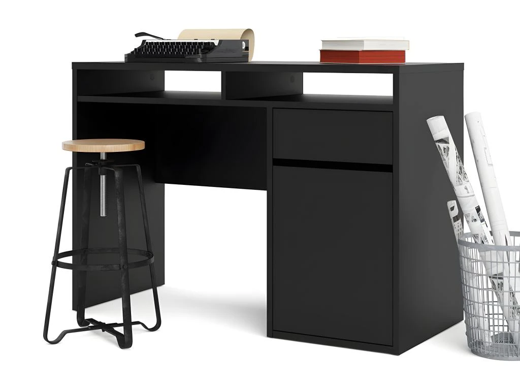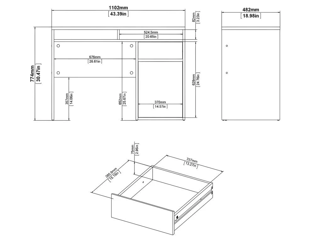 Bureau 1 Porte 1 Tiroir – Decor Bois Blanc Et Gris – L 140 X P 60 X H 75 – COLOGNE
