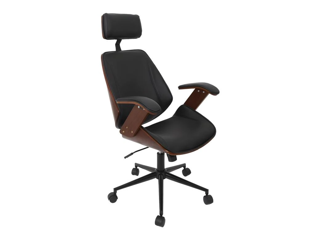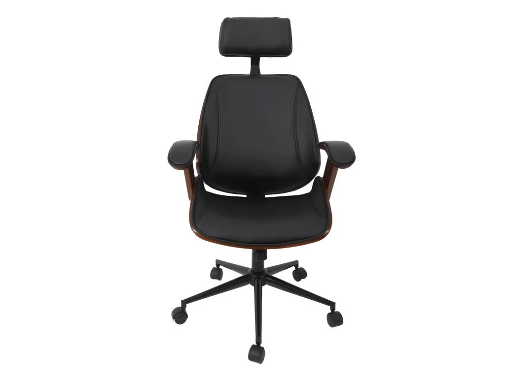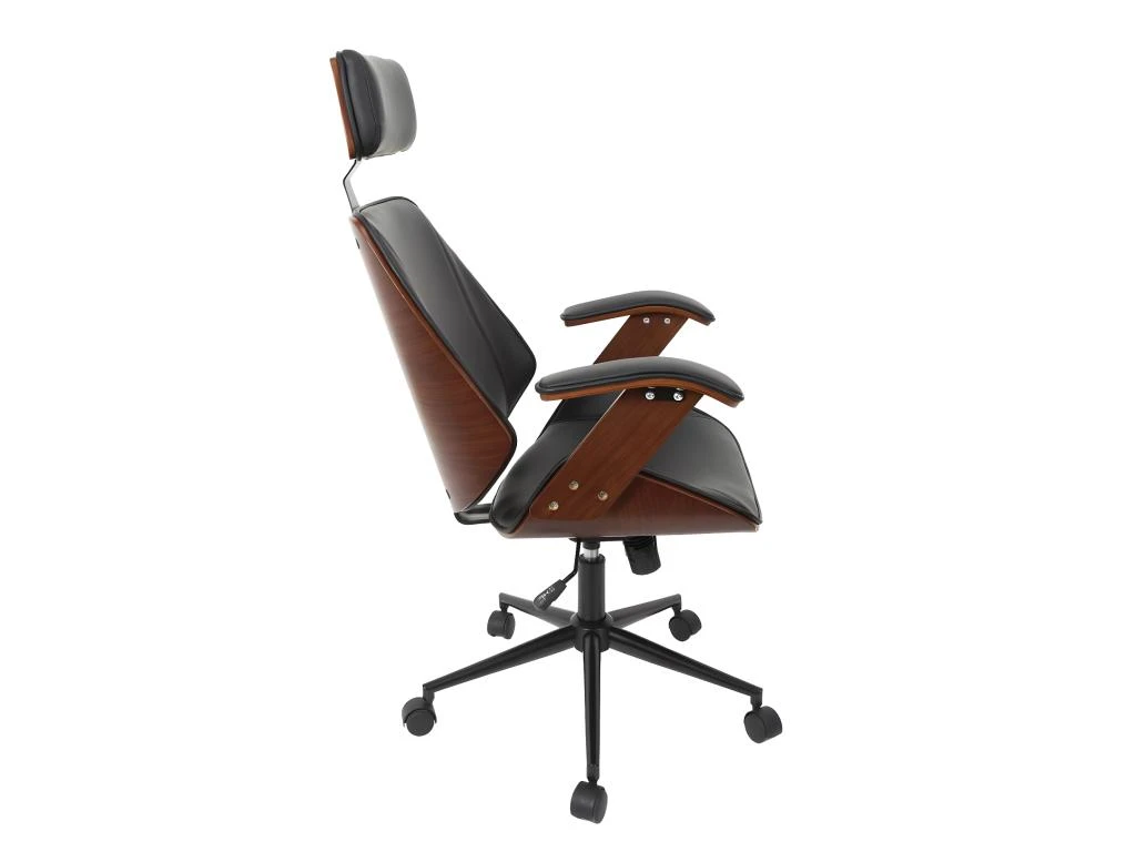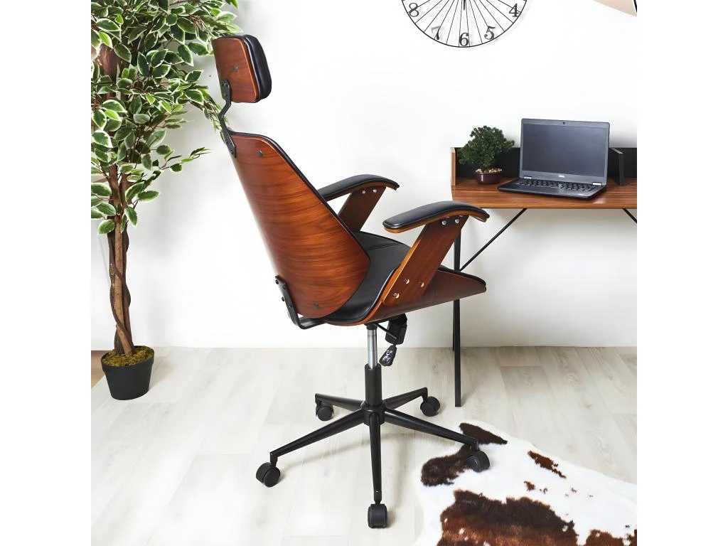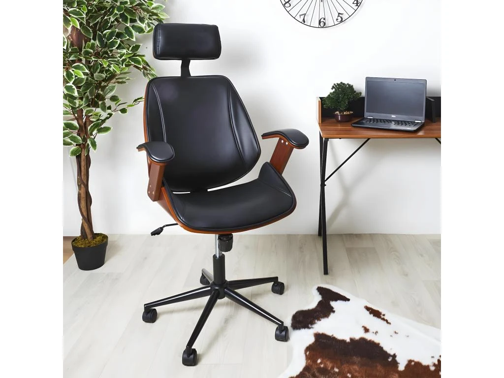 Fauteuil de Bureau Simili Cuir Noir et Effet Noyer de la gamme Ralph.