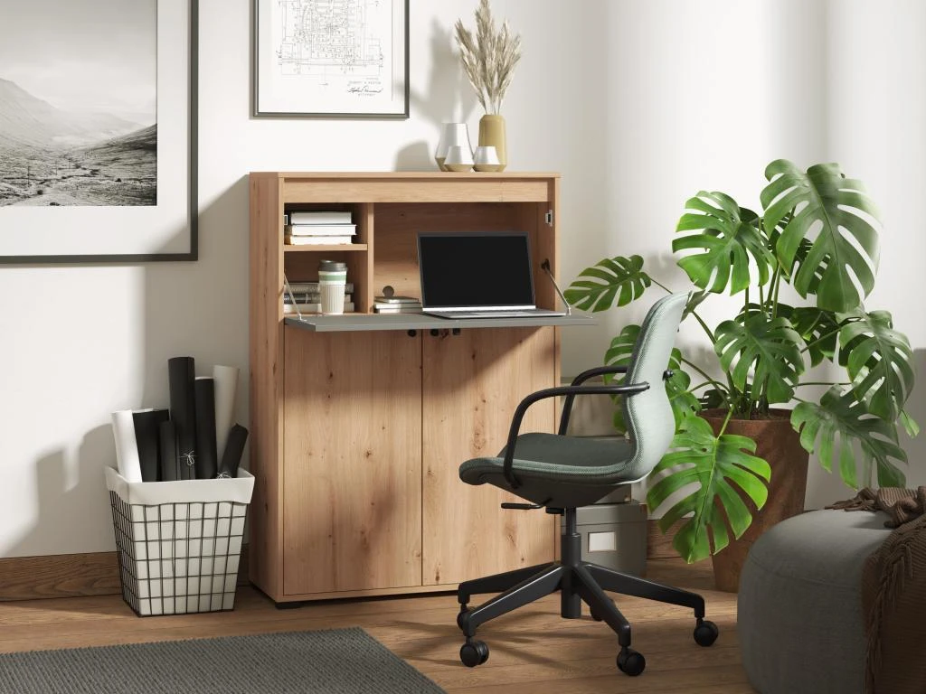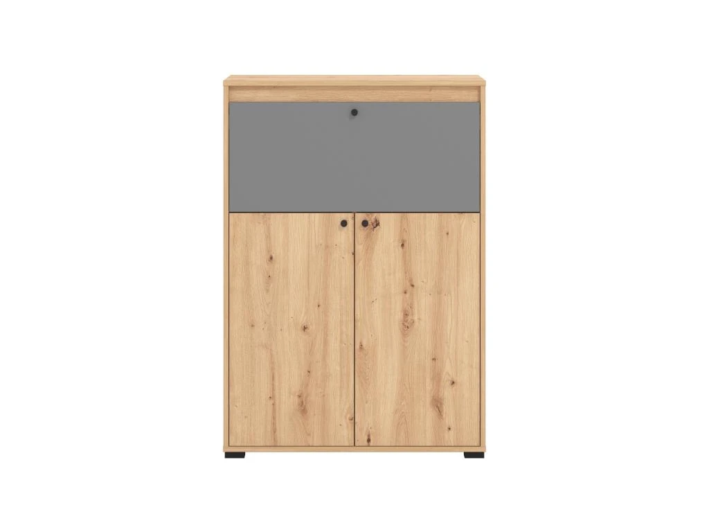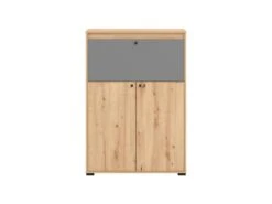 Secrétaire 2 Portes – Coloris : Naturel Et Gris – IDONAR