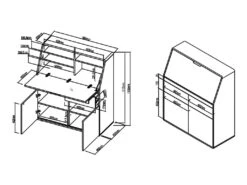 Le bureau secrétaire BAGUA est fait de MDF mélaminé blanc laqué. Il se compose de 2 portes, 2 tiroirs et d’un plateau rabattable. Ses étagères vous permettront de disposer aisément vos livres et autres accessoires !