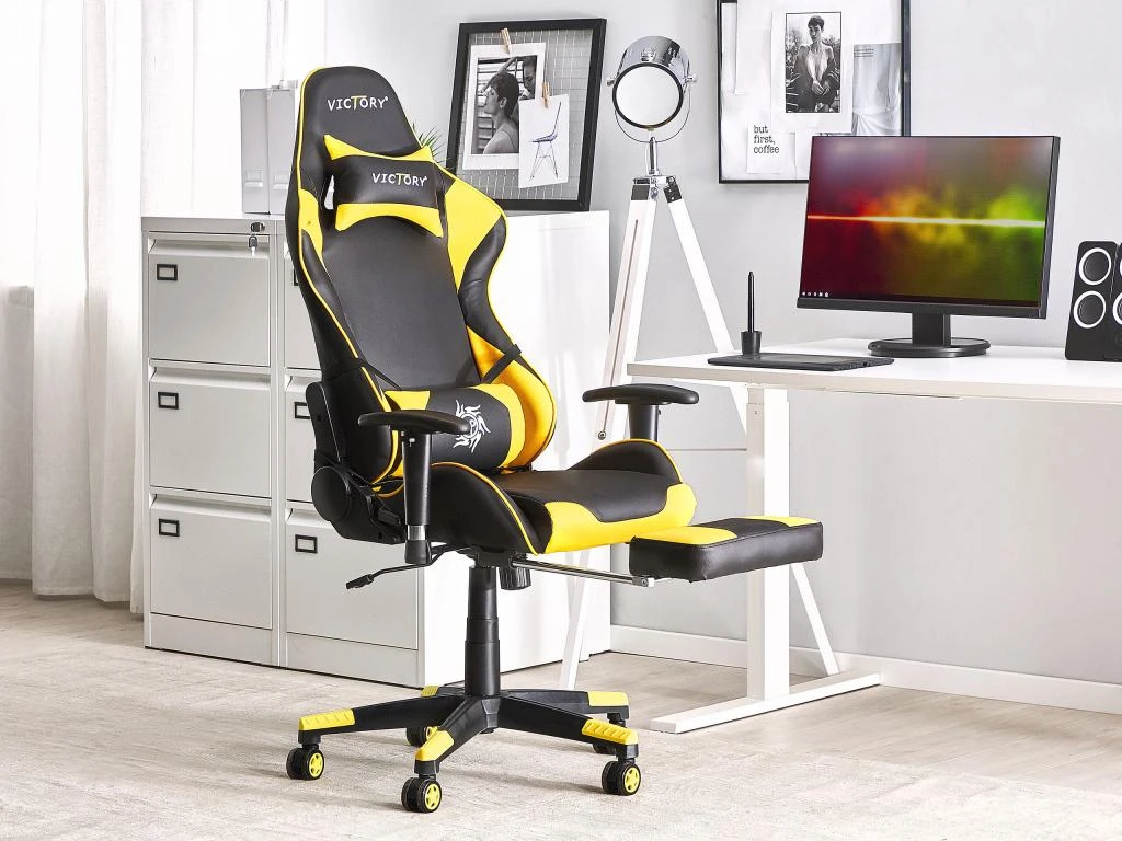 Caractéristiques clés: Rotation à 360°, roulettes en nylon qui ne rayent pas le sol, Dossier réglable en 3 positions, Dossier inclinable jusqu’à presque 180°, Coussin d’assise confortable à mousse à mémoire de forme, Forme ergonomique, Repose-pied confortable, Accoudoirs confortables profilés, Matières robustes faciles à entretenir