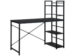 – BUREAU BIBLIOTHEQUE PLEIN D’ESPACE : Deux meubles en un : un bureau confortable et une bibliothèque pratique réunis. Le bureau Rebecca avec étagère est parfait pour optimiser l’espace et disposer d’un bureau ou d’un poste de travail polyvalent et spacieux. L’étagère placée sur le côté de la table vous permet d’avoir tous vos documents et livres bien rangés et à portée de main tout en laissant le dessus du bureau libre et dégagé.