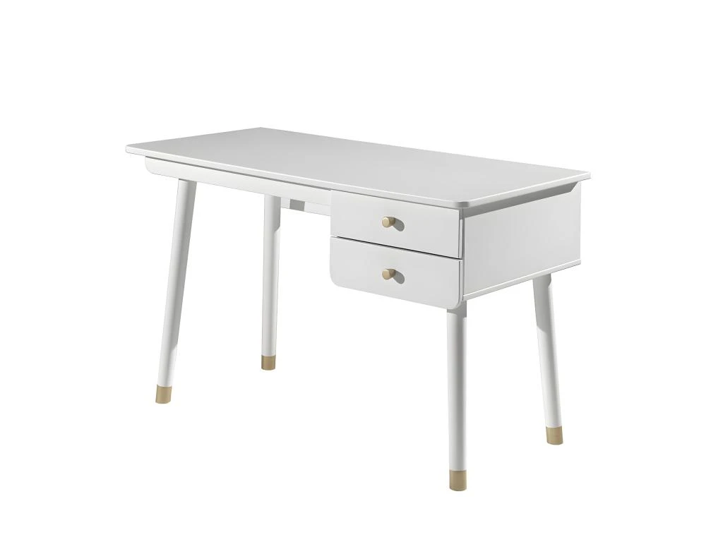 Bureau 2 Tiroirs Blanc, pieds et poignées Gold, de la gamme Tiny White.
