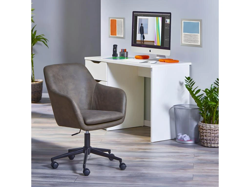 Un fauteuil monté sur roulettes et pivotant, pouvant s’utiliser aussi bien chez soi que dans un cadre professionnel. Son assise montée sur vérin permet à son utilisateur de choisir la position la plus confortable.
